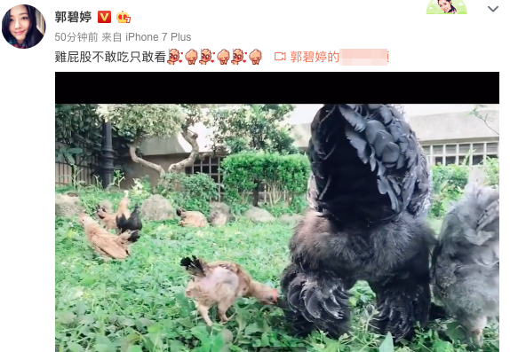 你以为女神只是说说而已?看到视频后,简直让人不敢相信,整整9秒钟的视频,郭碧婷录制的都是鸡屁股,从近景到远景,将那只黑色的小鸡“隐私”全曝光。