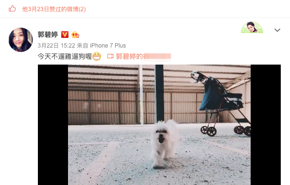 而且,每次郭碧婷晒出与宠物有关的动态,向佐也会前往点赞,夫妻恩爱,让人羡慕。