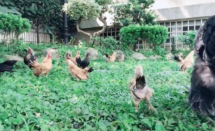 不过,也有网友注意到,在视频切向远景的时候可以发现,除了郭碧婷给予“特殊关注”的这只鸡外,庭院中还有许多只鸡正在觅食,瞬间一种岁月静好的感觉扑面而来。