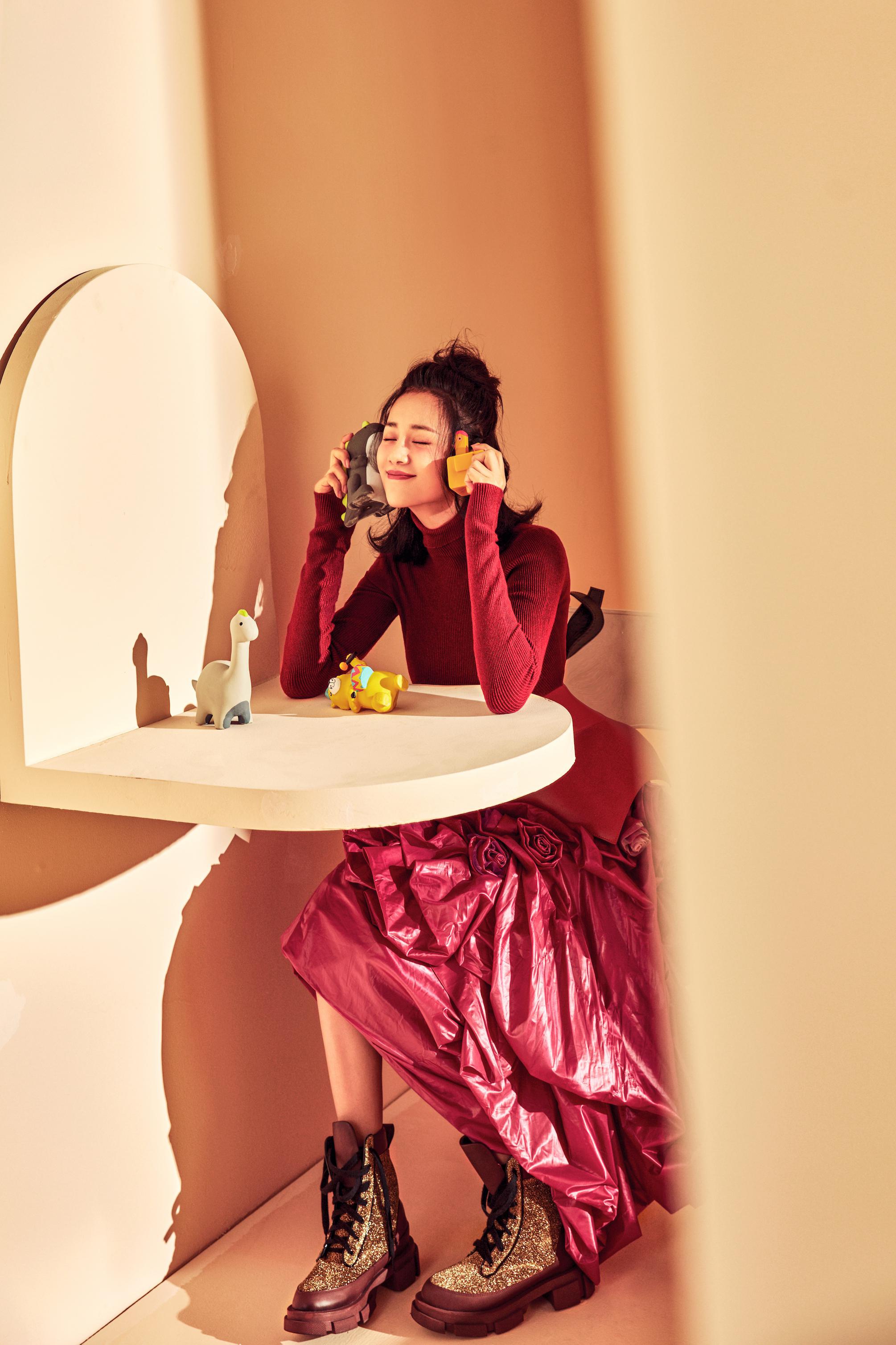 近日,新生代女演员安悦溪曝光了一组童趣少女新年写真。照片中童心未泯的安悦溪和手中的玩具开心的互动,可爱至极。扎着标志性花苞半丸子头,身着复古红色高领针织衫,腰间搭配同色系皮质腰带,完美勾勒出身材线条。绸缎质感的不规则长裙,加之几朵玫瑰花在裙间点缀,就连bulingbuling的马丁靴也暗藏穿搭小心机,复古优雅不失甜美个性。