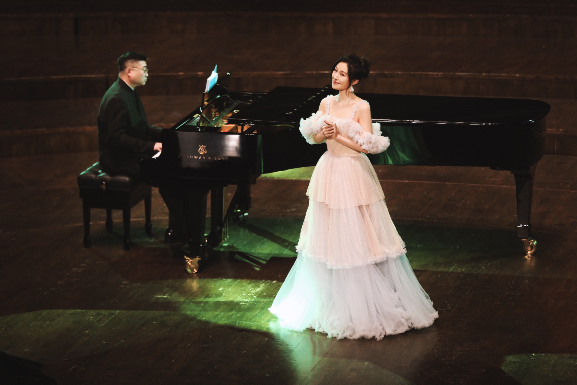 如果说音乐会的上半场重在表现中国民歌的创新色彩和流行歌曲的洒脱不羁,那下半场则更多展现国内外的古典音乐作品。常思思选择用情感对比非常鲜明的《玫瑰三愿》、《月亮颂》、《纸醉金迷》三联唱,带领听众们体会古典艺术歌曲的魅力。