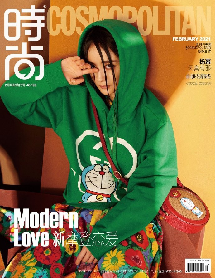 杨幂复古童趣写真大片曝光,图中杨幂搭配大胆,出现金色亮片手套、卡通logo卫衣等元素。杨幂表现力强,驾驭得十分有气场。