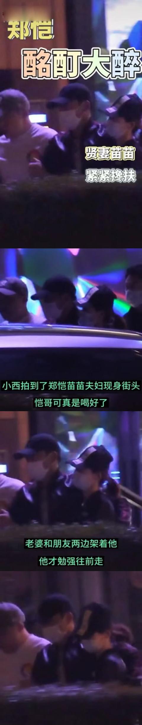 1月14日,有媒体公开了一段郑恺与妻子苗苗互动的视频,确切来说,是郑恺喝大了,苗苗将他搀扶回家的画面。 拍摄者表示,几天之前,他们在街头偶遇了郑恺跟苗苗,当时两人戴着口罩,在夜色之中行走,仔细看,两人不是拥抱秀恩爱,郑恺步伐不太稳,用尽全力保持着最后一丝清醒,在老婆跟好友的护驾下往前走。 郑恺夫妇穿着黑色情侣装,两人都戴着帽子,在黑夜中不太好辨认,估计拍摄者在酒吧门口蹲了一段时间,才能够确定是郑恺跟苗苗本人。 从画面可见,众人将郑恺带到了保姆车旁边,但郑恺似乎醉得连上车都有障碍,在两名壮汉的帮助下,才慢慢坐到了位置上。 至于苗苗,当晚是陪着郑恺一同聚会应酬,还是特意赶到现场接老公回家,就不得而知了。 34岁的郑恺除了是一名优秀演员之外,在生意场上也顺风顺水,他有属于自己的潮牌,开设泛娱乐文化公司,跟朋友一起经营酒吧、火锅店,从明星跨界成为投资人。 结婚生孩子之后,郑恺肩上的担子更重,他自曝将家里所有的房间都改成卧室,以前安排好的书房跟健身房不复存在,为了更好地照顾女儿,他恨不得将双方的父母都请到家里住。 不知道是不是因为压力增大,郑恺在生意场上也更拼了,像这次街头醉酒事件,很有可能就是为了应酬,还要出动老婆苗苗来“救场”,真是辛苦郑太太了。 郑恺很懂得利用他与妻子的新闻价值,在女儿出生之前,郑恺名下的火锅店开张,当时他就牵着身怀六甲的苗苗到现场,成功上了热搜。 为了自己的生意,郑恺动用不少人脉,像林峯、王祖蓝、李晨、蔡少芬、海陆、佘诗曼、黄圣依等人,都曾到他的火锅店站台,足见郑恺朋友圈的强大。 只是,喝酒伤身,生意再重要也不及生命,凡事还是悠着点比较好。 郑恺和苗苗2018年初次合作,2019年7月第一次拍到同框传出恋情,去年3月有传苗苗未婚先孕。 正当外界以为他们会隐瞒到底时,两人却给了大家一个惊喜,跳过宣布恋情,直接晒出结婚照官宣婚讯,而且把时间选在2020年5月21日13点14分,寓意“我爱她(他)一生一世),十分有心思。 由于疫情关系,郑恺和苗苗没有办婚礼,但小两口十分甜蜜,形影不离。 郑恺也撕掉了婚前的“夜店小王子”标签,变成好老公、好爸爸。 去年10月22日,郑恺在采访中突然官宣苗苗已经生女的喜讯。 他特意感谢了太太,说她非常辛苦,希望大家多给她一点时间休息,言语间满满对苗苗的爱。 自从升级成为奶爸后,郑恺就经常把女儿挂在嘴边,称自己现在一出门就想回家看女儿。 他还在采访中自曝希望女儿眼中的父亲是一个帅气的男人,所以当爸后对自己形象要求更高,不再那么随意,以前他很爱穿运动服,现在开始购买高定西服。 跟普通奶爸一样,郑恺也忍不住晒娃。 之前苗苗在微博晒出夫妻俩一起带女儿外出放风的照片,郑恺立刻跑去评论:“一起放风。”一家三口十分温馨。 就连录制《跑男》时,郑恺也忍不住说起女儿。 其中一期节目,baby给大家看小海绵在家玩学步车的画面,郑恺立刻让baby把小海绵不要的玩具送给他女儿玩。 网友都笑说,自从当了爹以后,郑恺都变得精打细算了!
