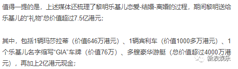 有人粗略的给黎天王算了笔账,四年里,光是黎明送给乐基儿的礼物,加起来也少说有7.5亿港元。