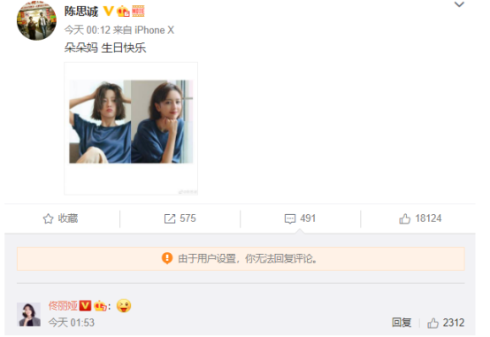 意外的是,第一个为她卡点送上祝福的居然是前夫陈思诚。