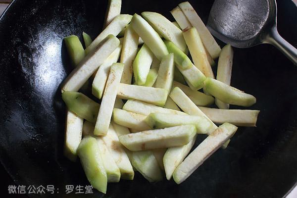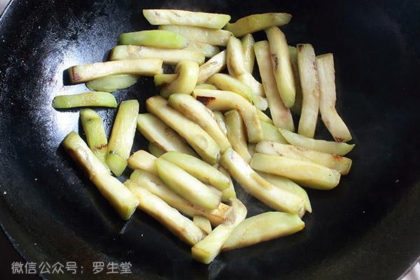 煸炒至茄条软下来并缩小,大约六七分钟的样子