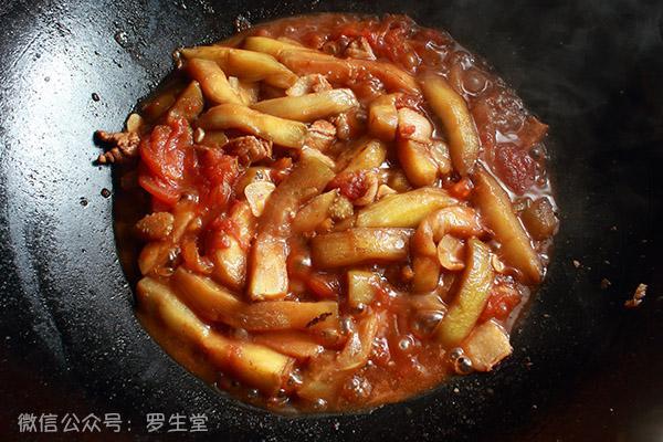 烧茄子的水不用太多,够把茄子烧烂还剩一点就可以了,水太多味道会变淡。