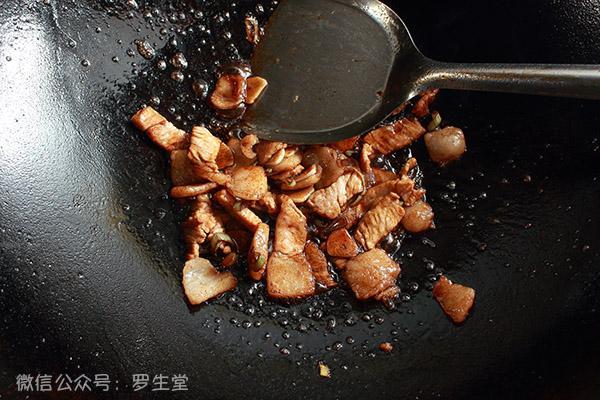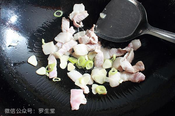 炒锅烧热后放少许油,先煸肉片,放少许葱蒜炒香