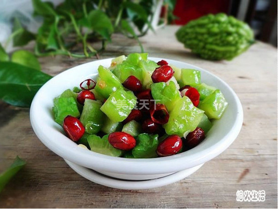 苦味食品中所含有的生物碱具有消暑清热、促进血液循环、舒张血管等药理作用。热天适当吃些苦味食品,不仅能清心除烦、醒脑提神,且可增进食欲、健脾利胃。苦瓜:取其未熟嫩果作蔬菜,成熟果瓤可生食,既可凉拌又能肉炒、烧鱼,清嫩爽口,别具风味。苦瓜具有增食欲、助消化、除热邪、解疲乏、清心明目等作用。此外,苦菜、茶叶、咖啡等苦味食品亦可酌情选用。应注意的是,食用苦味食品不宜过量,否则可能引起恶心、呕吐等症状。