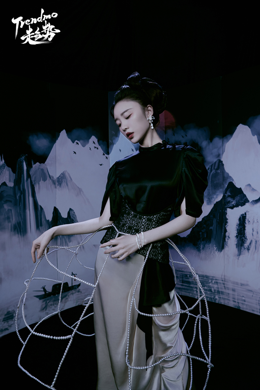 10月12日,张月一组最新时尚杂志大片曝光。暗夜置身苍穹皓月下,立于倾泻清辉中,一颦一笑似画中走出的古典美人。身着刺绣粉白霓裳,华美矜贵流露满满仙气,卧于银石微波间沉思无尽芳华;纯黑亮片旗袍勾勒曼妙袅娜身姿,拨动指下丝竹聆听动人琴语;一袭暗色长袍飘逸酷飒透着浓浓神秘韵味,薄纱轻舞气场全开;珍珠面罩精致独特,缎面套装配以镂空裙撑诠释创意时尚态度。 张月在《国子监来了个女弟子》中是汴京富家小姐宋佳音,刁蛮任性却不失娇憨可爱,大片中的她或娉婷绰约,或飒气俊逸,或华贵优雅,国风适配度与镜头表现力拉满,让人看到了她对各种风格的完美驾驭以及无限可能性。