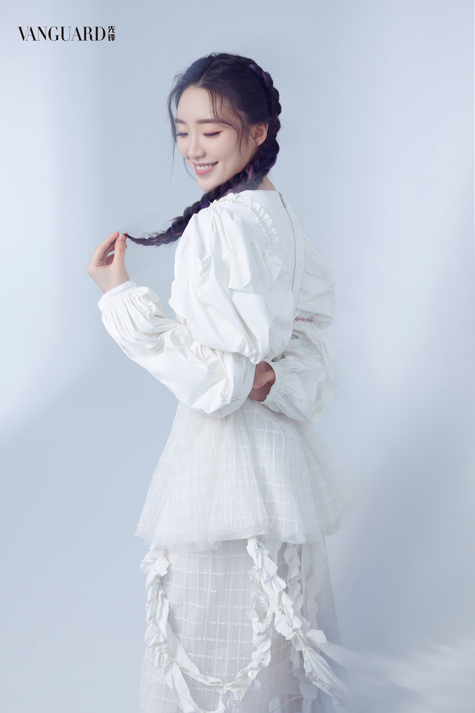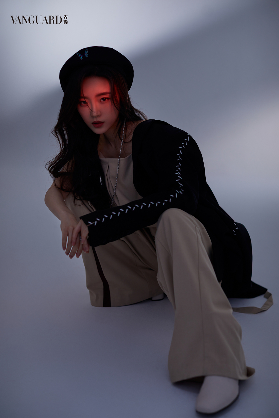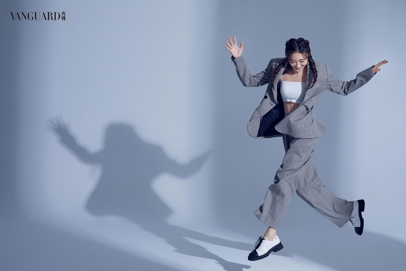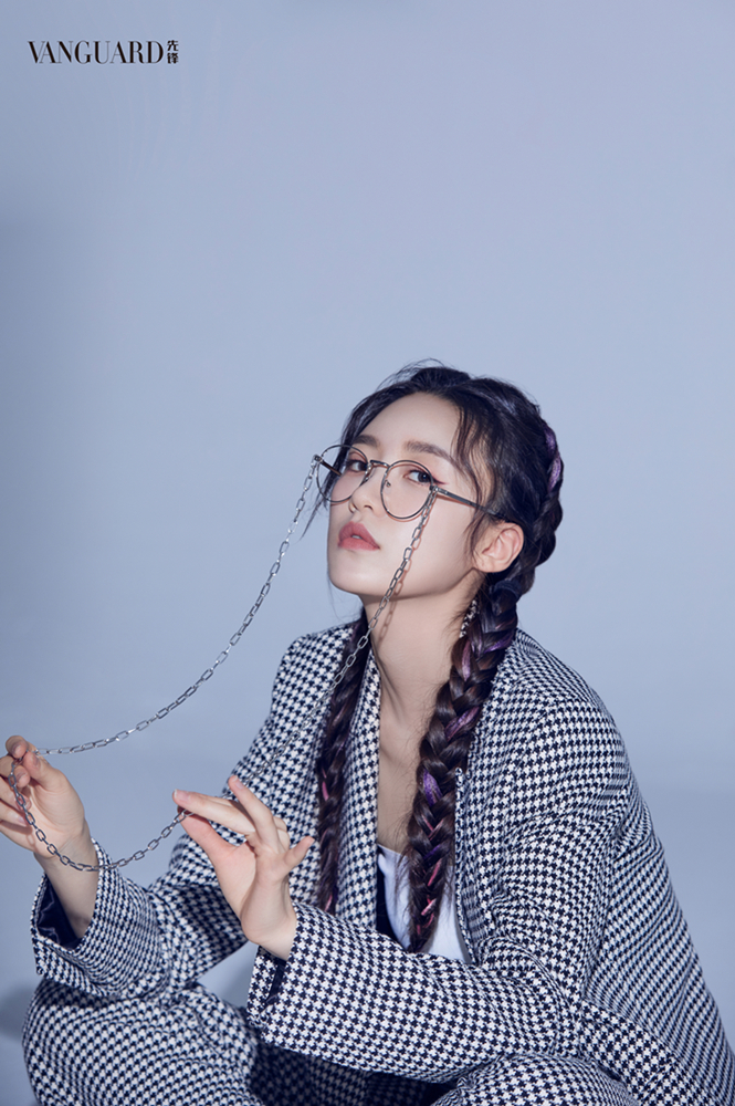 大片中的张月一袭裸色无袖连体裤搭配黑色贝雷帽,蝴蝶与链条装饰强势吸睛,暖红灯光勾勒立体五官,满分创意又极具恬静温婉;或纯白衬衣碰撞缀以银质饰品的黑长直发,眼神冷冽气场全开;时而彩色编发双马尾搭配纯白公主裙,低头莞尔愈见甜美可人,时而巧搭黑白千鸟格西装,或慵懒凝视、或灵动跳跃镜头表现力极强。