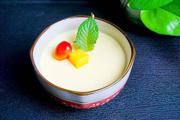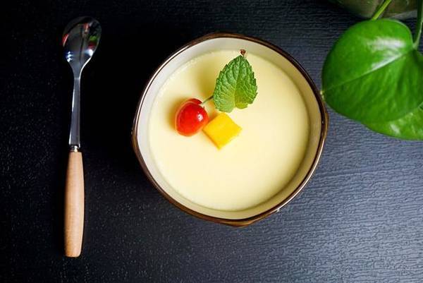 这是特别可口浓香的小食,绝对的宵夜首选——牛奶炖蛋。浓郁的奶香和蛋香,混合在一起,口感香滑细腻,入口即化,香甜可口。而且切一个芒果,加几颗樱桃进去,多了水果调皮的清爽甜蜜感,吃起来更香。