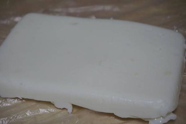 4、倒入容器中,如果不是那种不粘的容器,可以在四周涂一层油。入冰箱冷藏1小时左右。冻好的牛奶有点q弹。