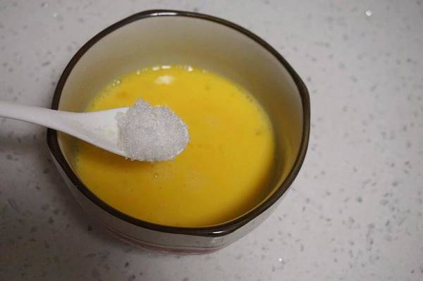 加入2小勺糖,可以静置等一会待白糖融化,也可以继续用打蛋器搅拌。