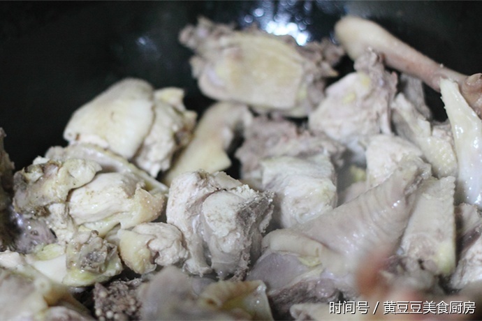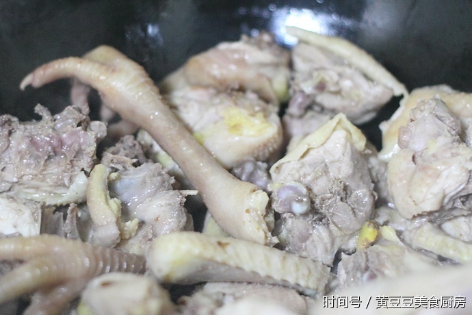2、鸡肉焯水后可以直接下锅炖,个人习惯喜欢先炒一炒,一方面是鸡肉吃起来更香,另一方面也可以减少油分的摄入,炒的过程中也能将鸡皮上的油炒出