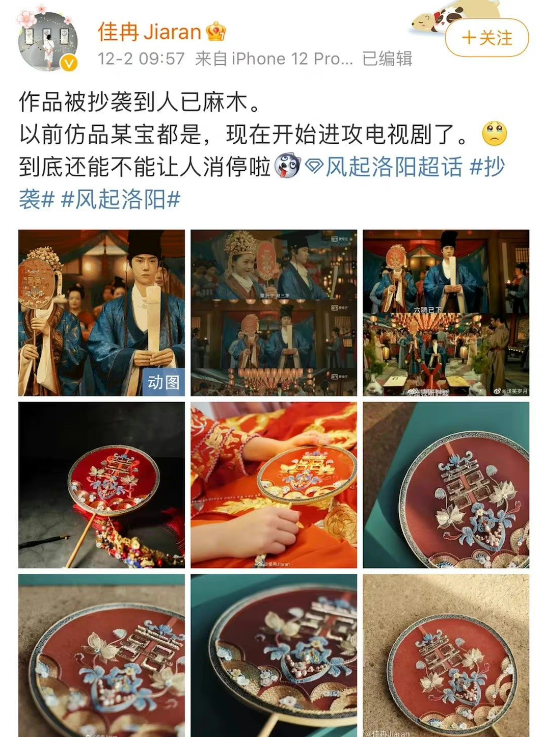 被原创设计者痛斥未经过原创授权,使用盗版团扇,连发多条微博维权。
