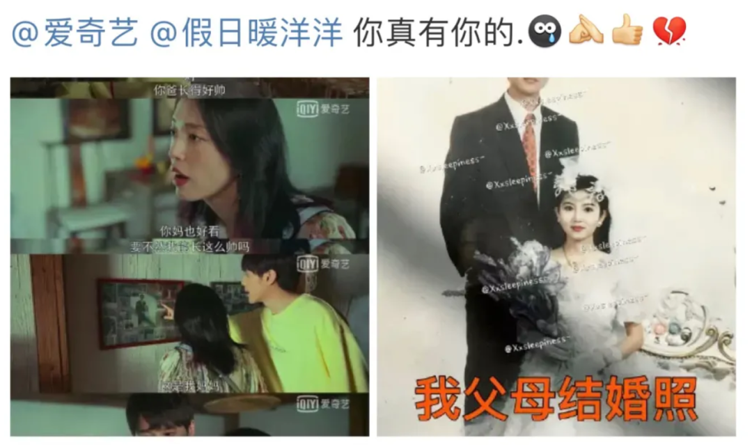 今年2月,《假日暖洋洋》播出时,就有网友震惊地发现,自己爸妈的结婚照成了剧中白宇父母的结婚照,而且,“还早逝了”……