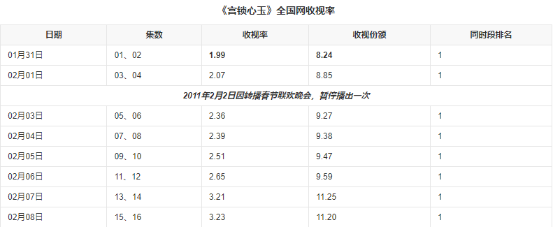 《宫锁心玉》当年有多爆?收视破3,同时段排名永远第一。