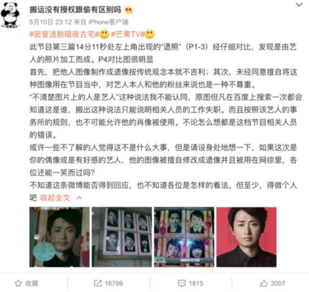比如2018年某芒果综艺,赫然出现多名日韩明星的“遗照”,让人看了满头问号:哪来的big胆???