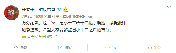 一天之后发微博道歉,语焉不详,道歉的主体都不明晰。