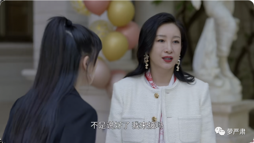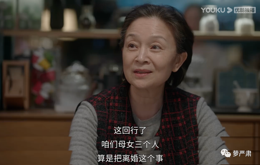母亲认为自己是想给女儿最好的生活才物色了那时候看来最好的女婿,她自己离婚了因而特别希望女儿能在婚姻上“成功”(当然是一种陈旧的观点)。双方话赶话不欢而散,两个母亲的形象也立住了。