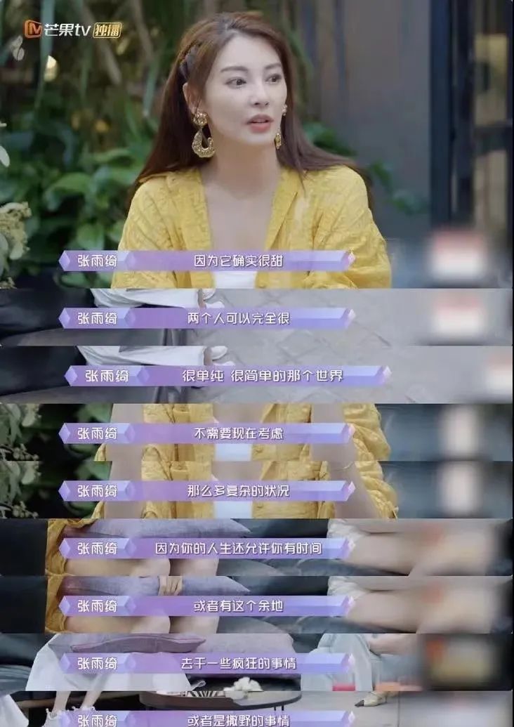 这点张雨绮自己表达过,她心中的谈恋爱,就是躺着,玩游戏,吃雪糕,不动,按摩,那就是谈恋爱。