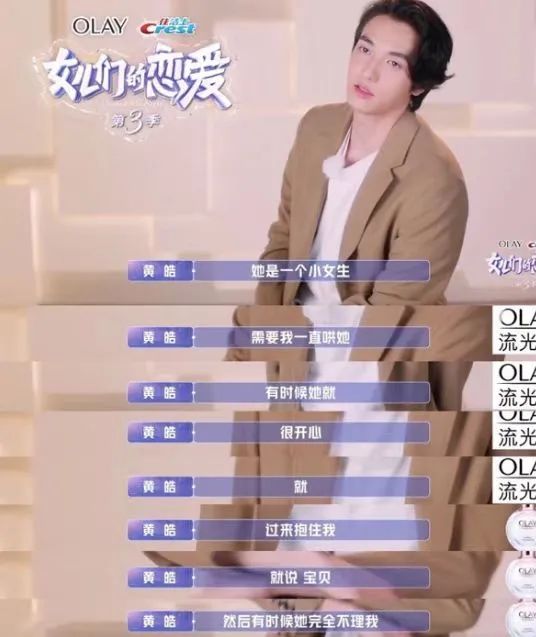 黄皓说她完全看情绪,就像一个小女生,需要人一直哄她。有时候就很开心,会抱住他,有时候就完全不理他。