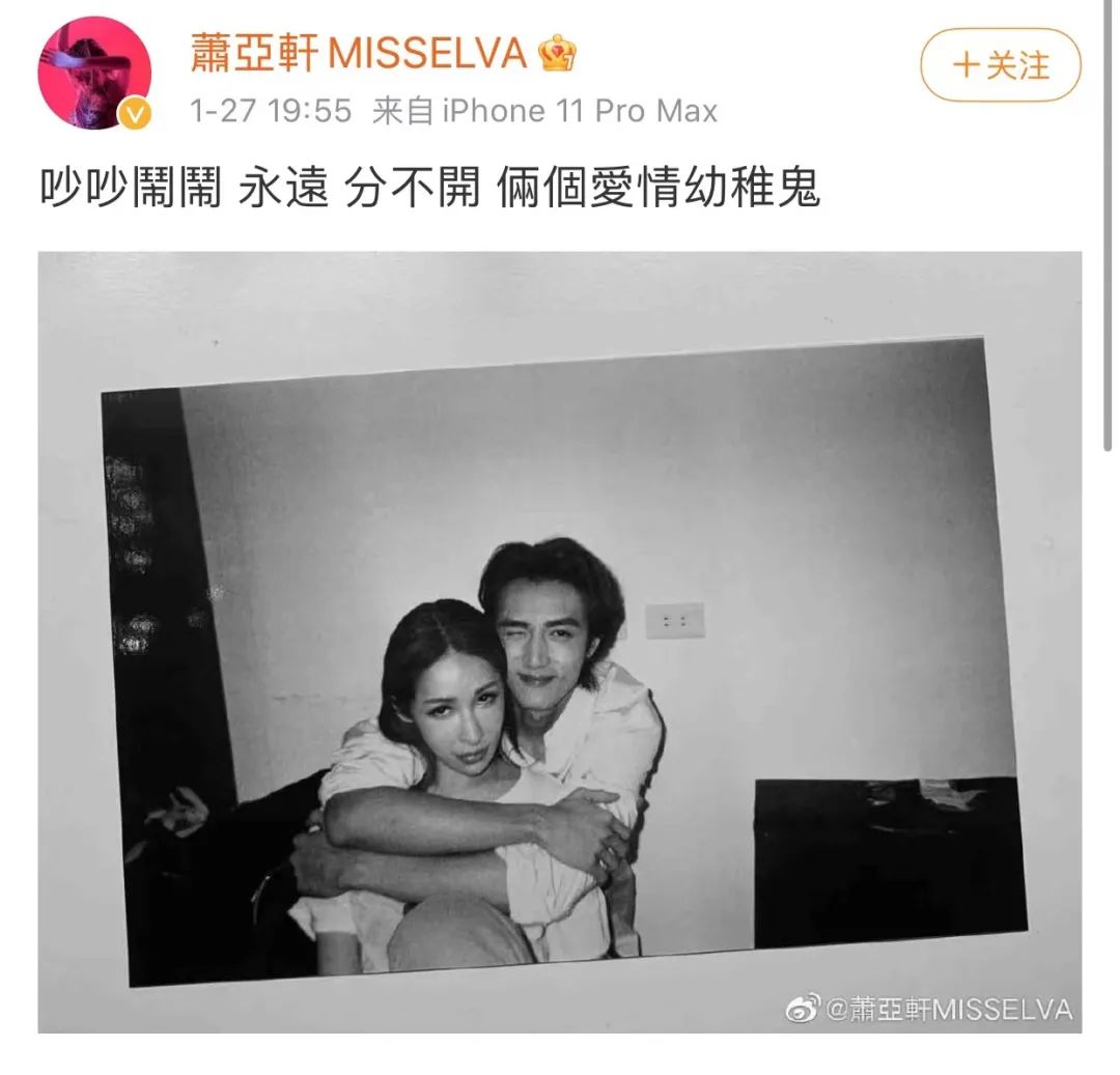 而虽然已经分手,但她的微博上,依然还保留着当初官宣恋情时的那条图文。