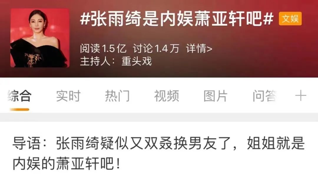 张雨绮爱咋换男友就咋换,个人私事无可厚非,年轻人把这种态度当作一种女性解放和独立的楷模,我还是警惕的。