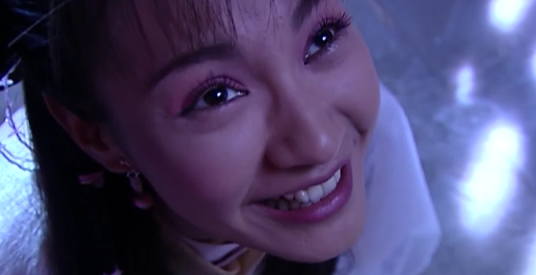 黑化不靠烟熏妆,唇色自然,妆容清淡,甚至脸上还挂着最甜的笑,但一个眼神就能让人毛骨悚然。