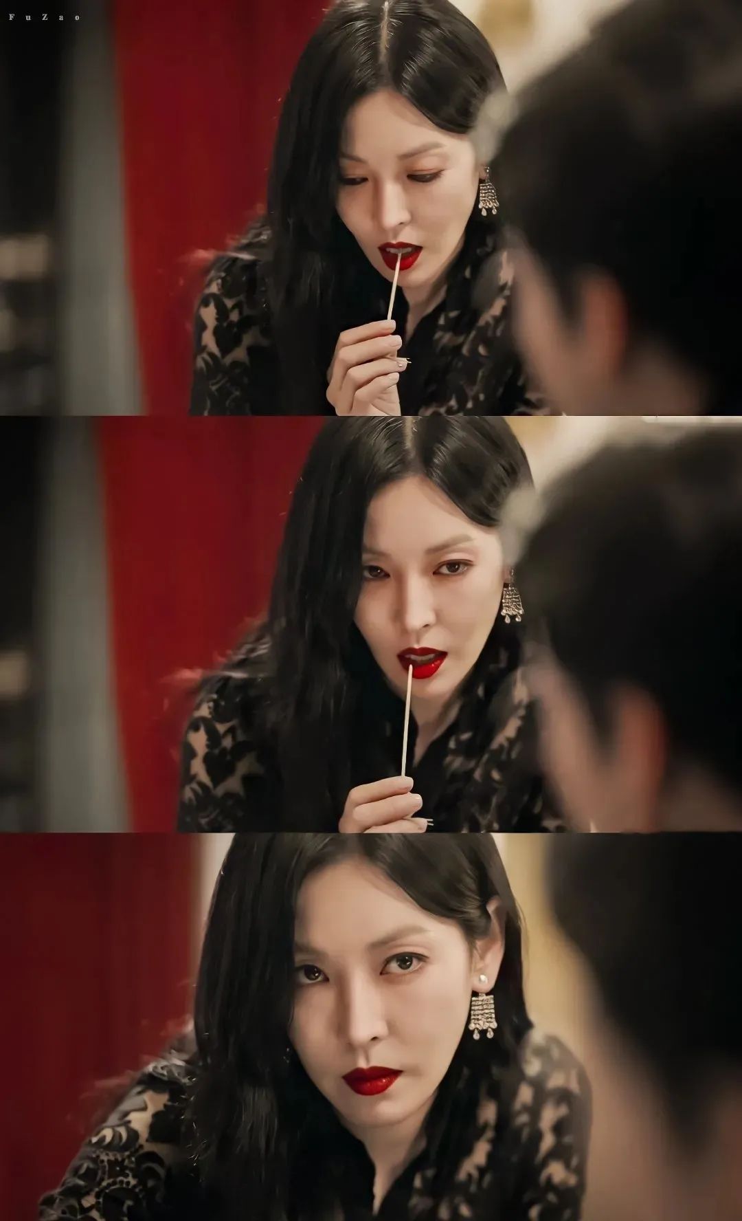 “疯批美人”首先讲究的就是美,她的美毋庸置疑,典型的绝美蛇蝎女。