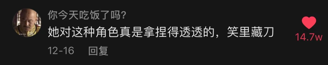 是的,不得不承认,她对这种笑里藏刀的角色拿捏得透透的。