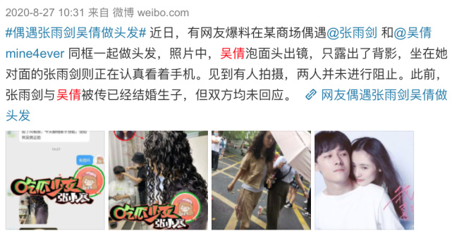相比王子文孩子的父亲同陈坤孩子的母亲一样神秘,吴倩孩子的父亲,大家好像早已心照不宣了,就是那个,没有流量的命、却得了流量的病的张雨剑。