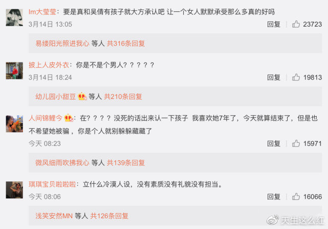 当晚八点多,在被骂上热搜之后,张雨剑终于站出来承认孩子了,但回应里连孩子她妈的名字都不肯提,是吴倩两个字烫嘴吗?