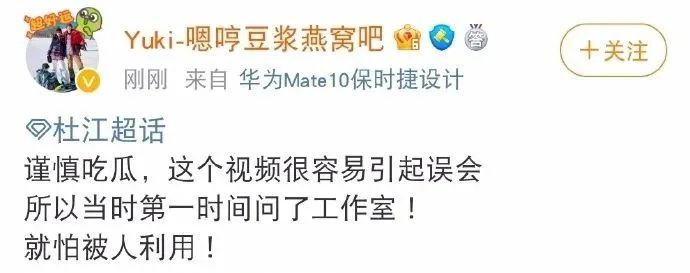 粉丝也说让大家谨慎吃瓜,怕被有心人利用,所以11号得知有这个视频的时候就去问过工作室,也澄清过。