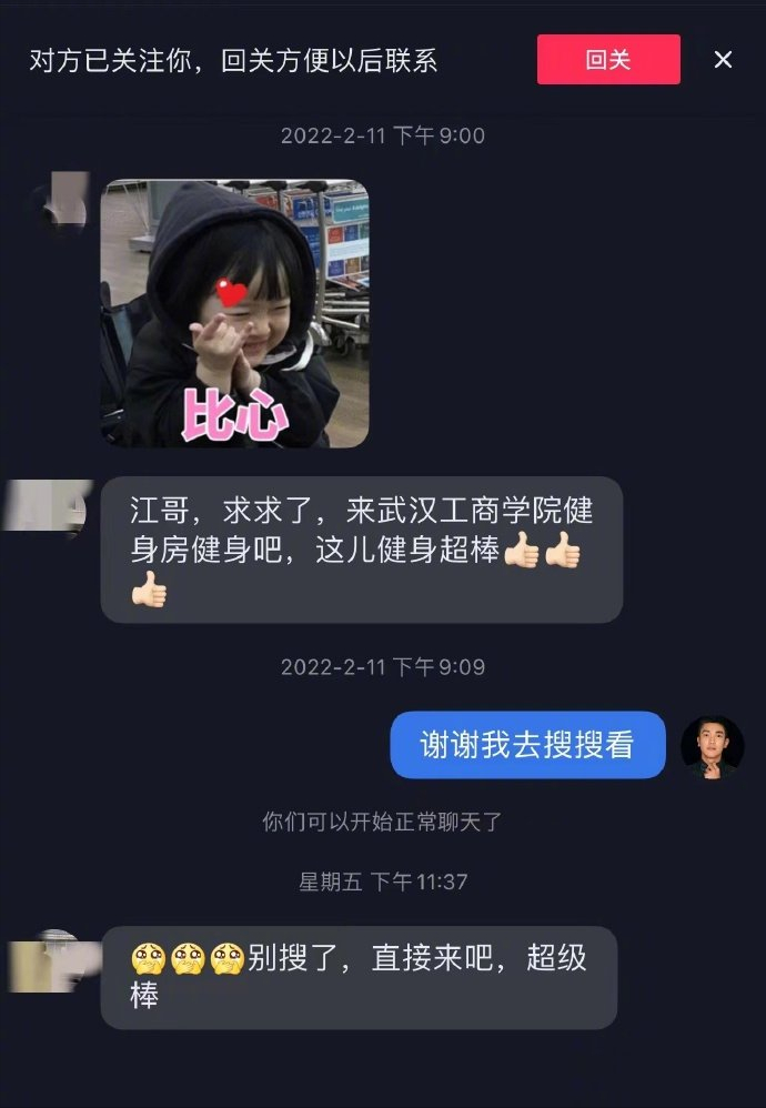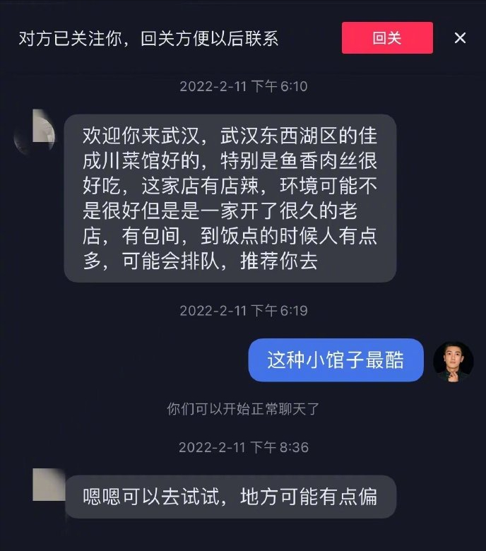 而其他网友们都是主动私信杜江的,杜江也没回关,这很正常,可爆料中的女生却是杜江主动私信的,还进一步要了微信,茫茫武汉人中选中一个真的不容易。