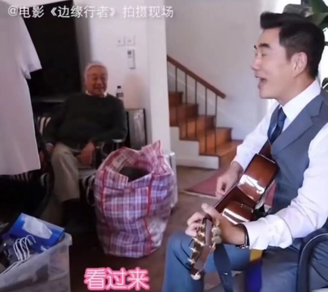 任贤齐抱着吉他唱歌,曾江在一旁笑着哼唱,场面温馨美好,殊不知那却成了他最后的快乐时光。