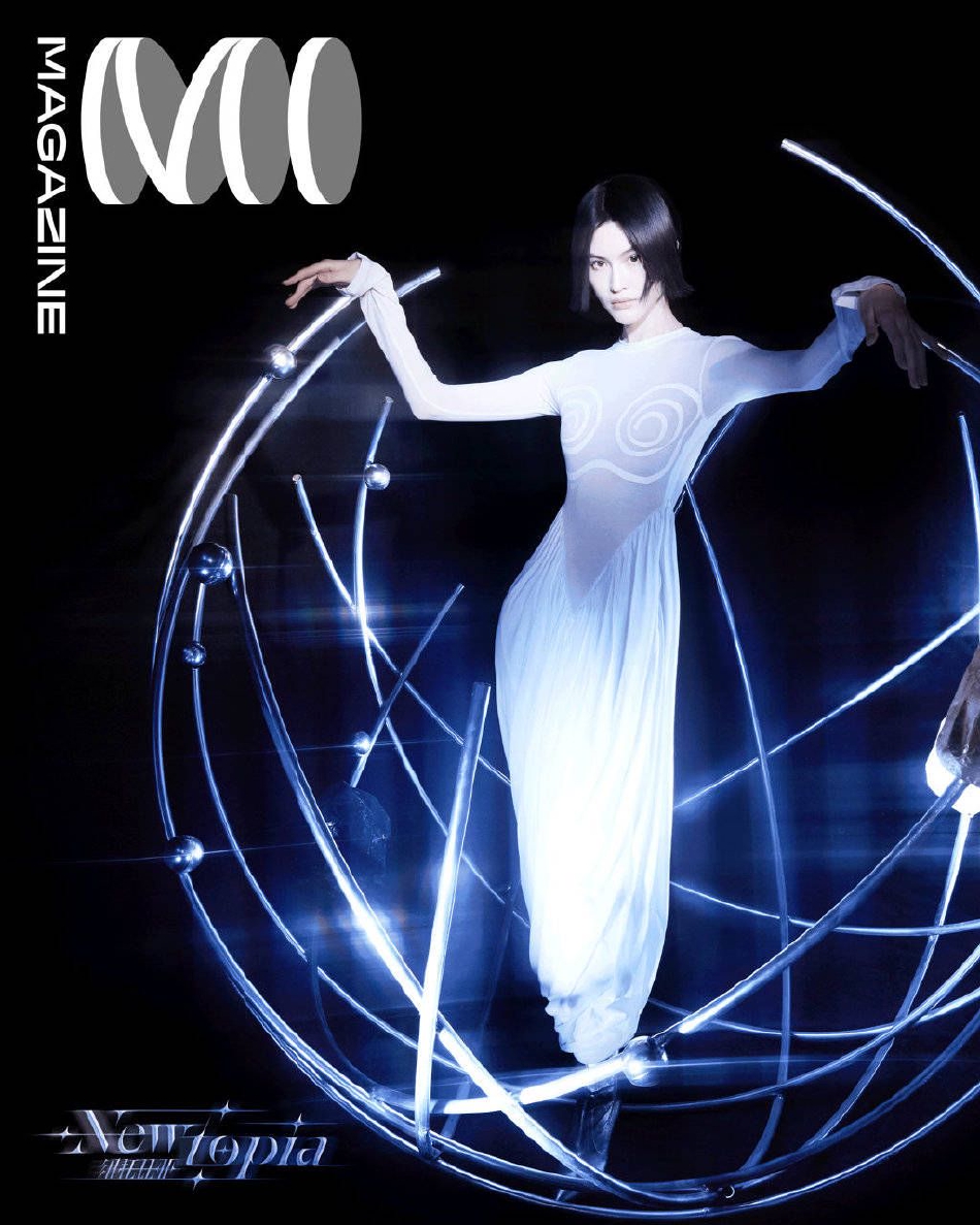 14日,何穗元宇宙封面大片释出,她身着银色亮片服装,一头短发,直视镜头,眼神超A。