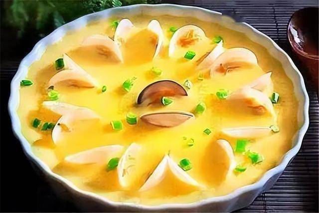准备食材:蛤蜊300克,鸡蛋200克,大葱3克,盐10克,味精5克,黄酒5克,色拉油15克。