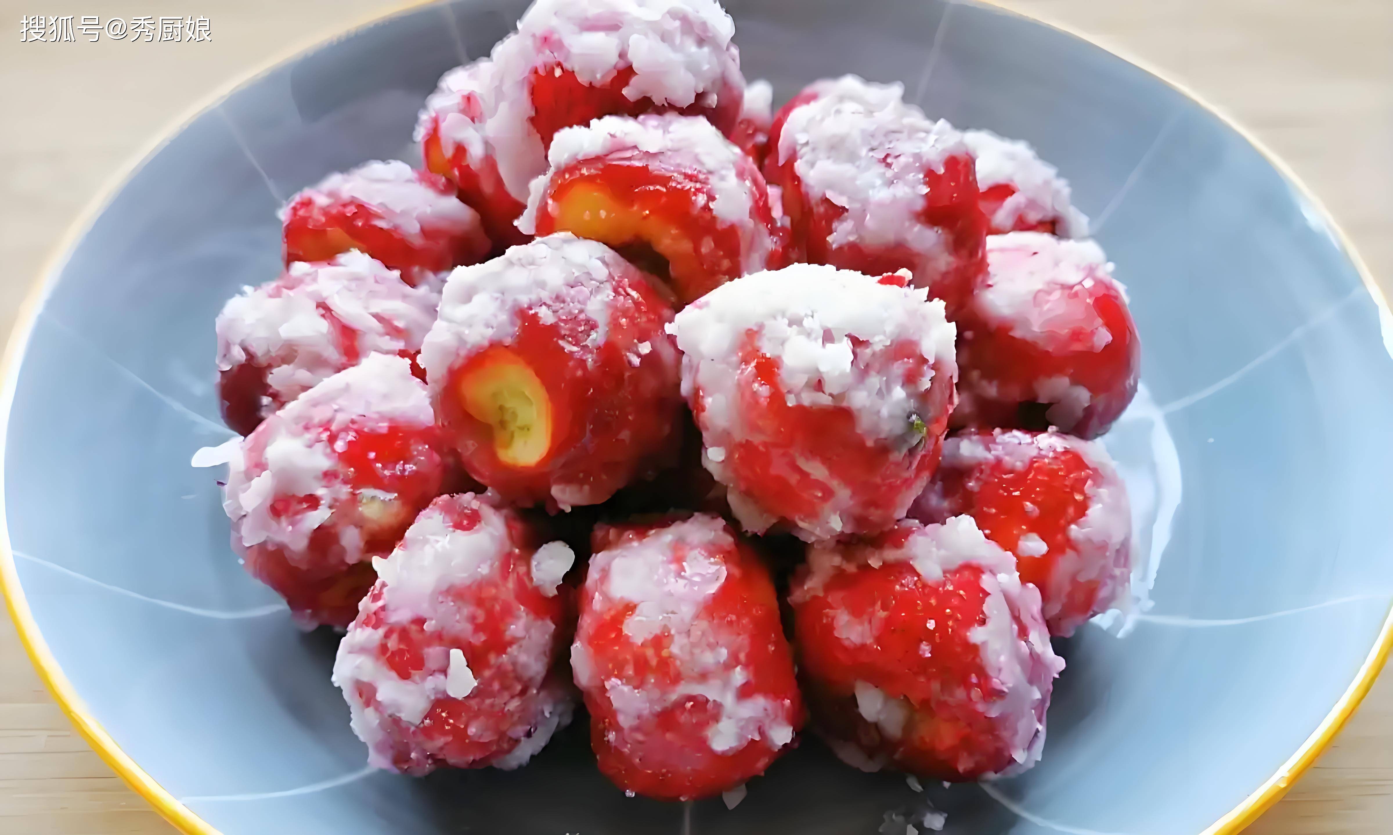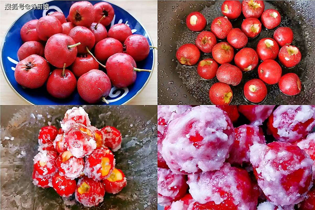 5. 完成:随着糖液温度下降,你会看到白糖开始在山楂表面结晶,形成白色的糖霜,直到每颗山楂都裹满了雪白的糖衣,这道挂霜山楂就大功告成啦!