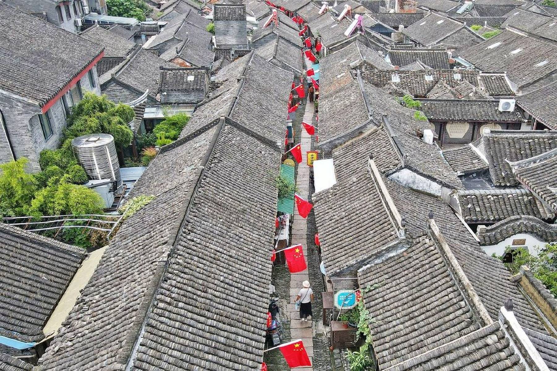 杭州 河坊街古建配红旗+“心形打卡点” 历史街区+情感互动装置
