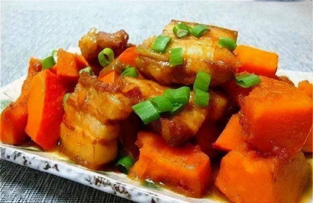 食材:五花肉、南瓜、葱、姜、八角、老抽、料酒。冰糖、生抽、盐