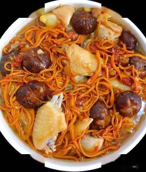 1. 鸡胸肉切丁,加料酒、生抽、淀粉腌制15分钟。胡萝卜、香菇切丁。