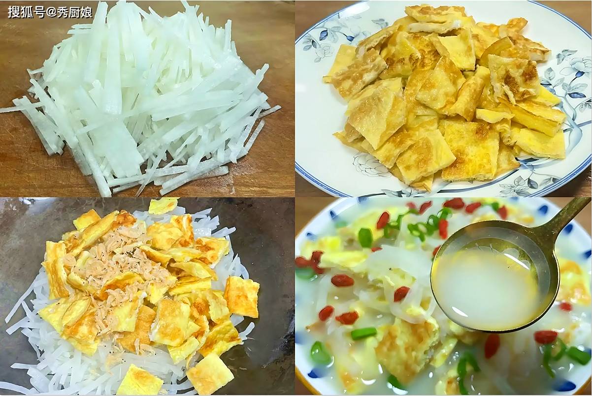 推荐食谱:白萝卜丝虾皮煎蛋汤