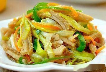 1、煮熟烂的猪肚切丝