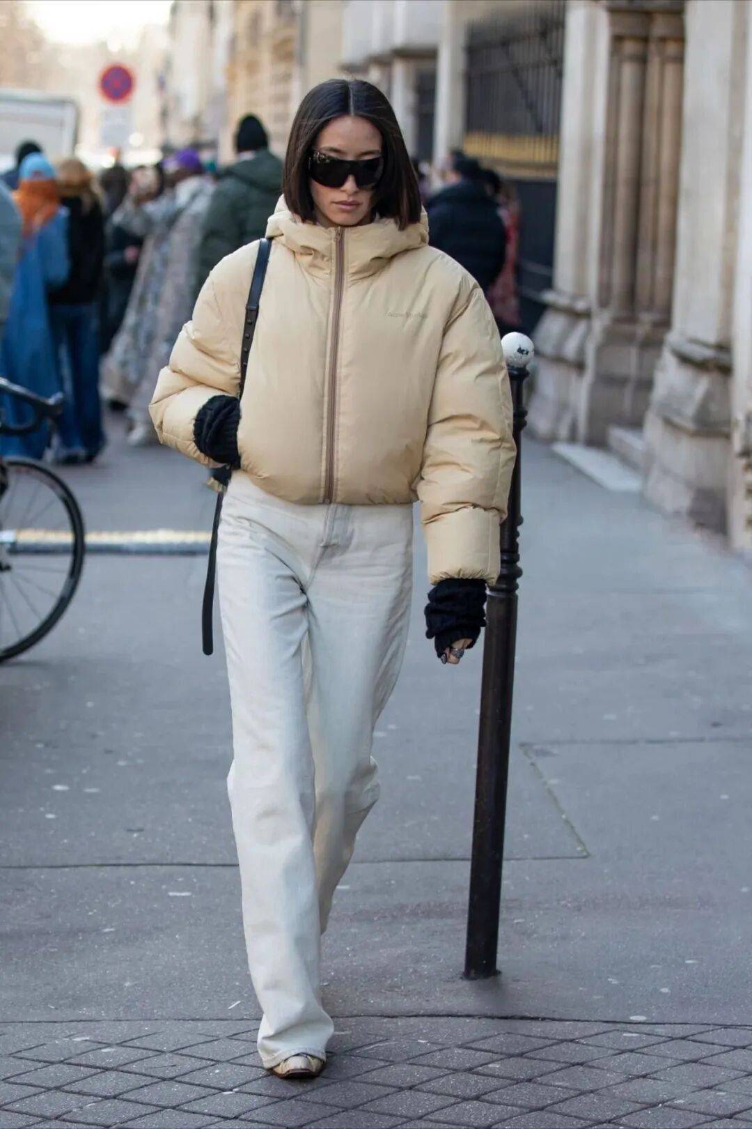 短款羽绒服的流行,打破了羽绒服向来笨重的轮廓。它让冬天的穿搭重新获得灵活度。长度的缩短,释放了下半身的空间,也带来了更鲜明的层次关系。