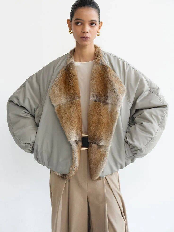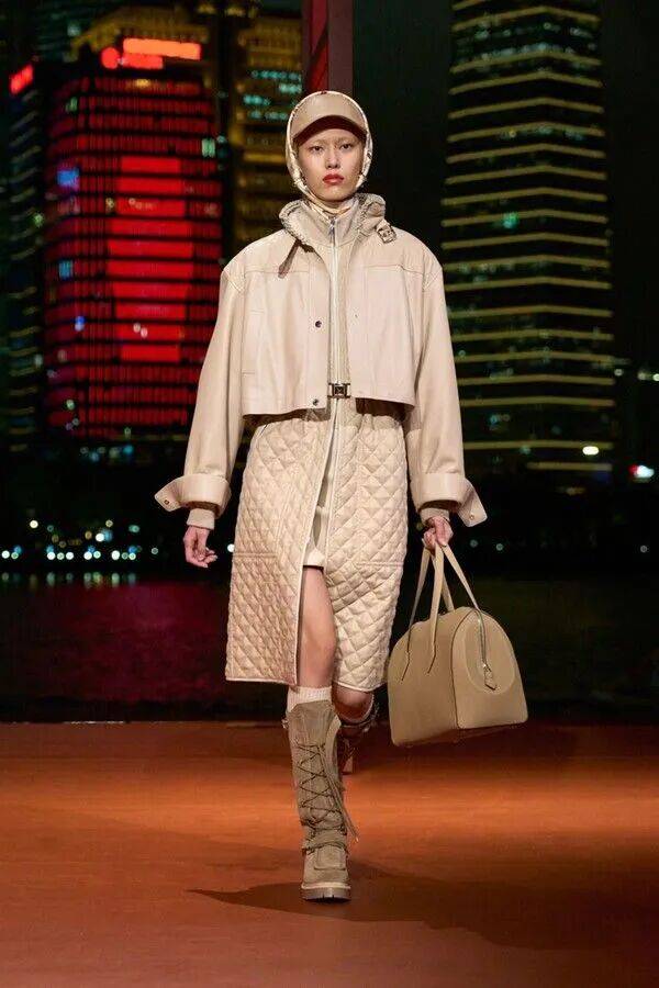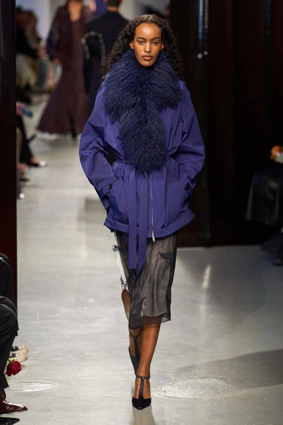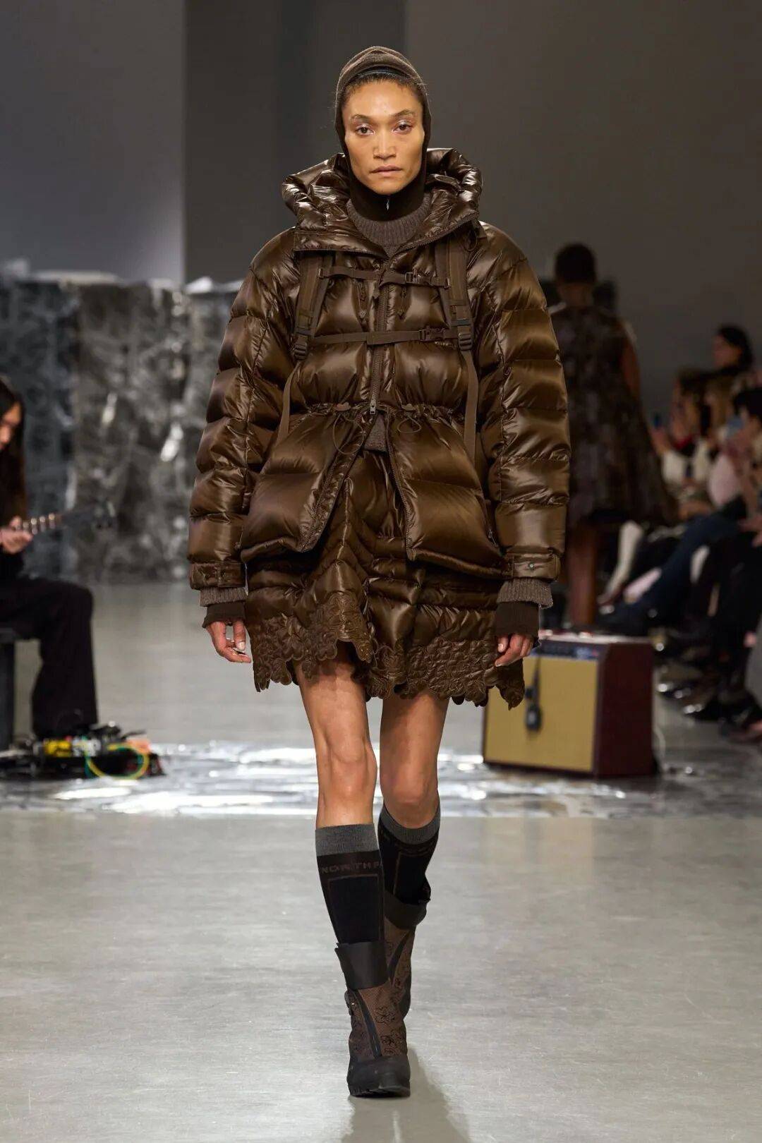 毛领的设计感,为羽绒服增添柔和温暖的层次。为了避免臃肿,如今设计师更懂得克制,倾向于局部拼接,让毛感成为有分寸的点缀。