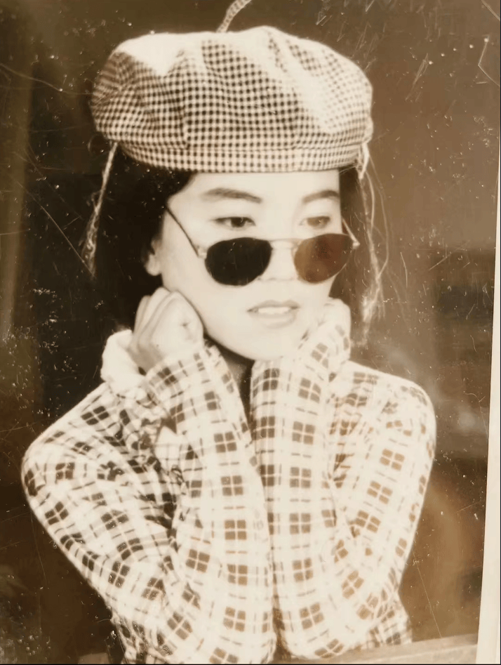 这张照片是网友分享的,照片上的女孩是她的妈妈。当时她26岁,刚刚和她的爸爸结婚不久。照片里的女孩时尚、清纯,眼神中透露着一种温柔的忧郁。