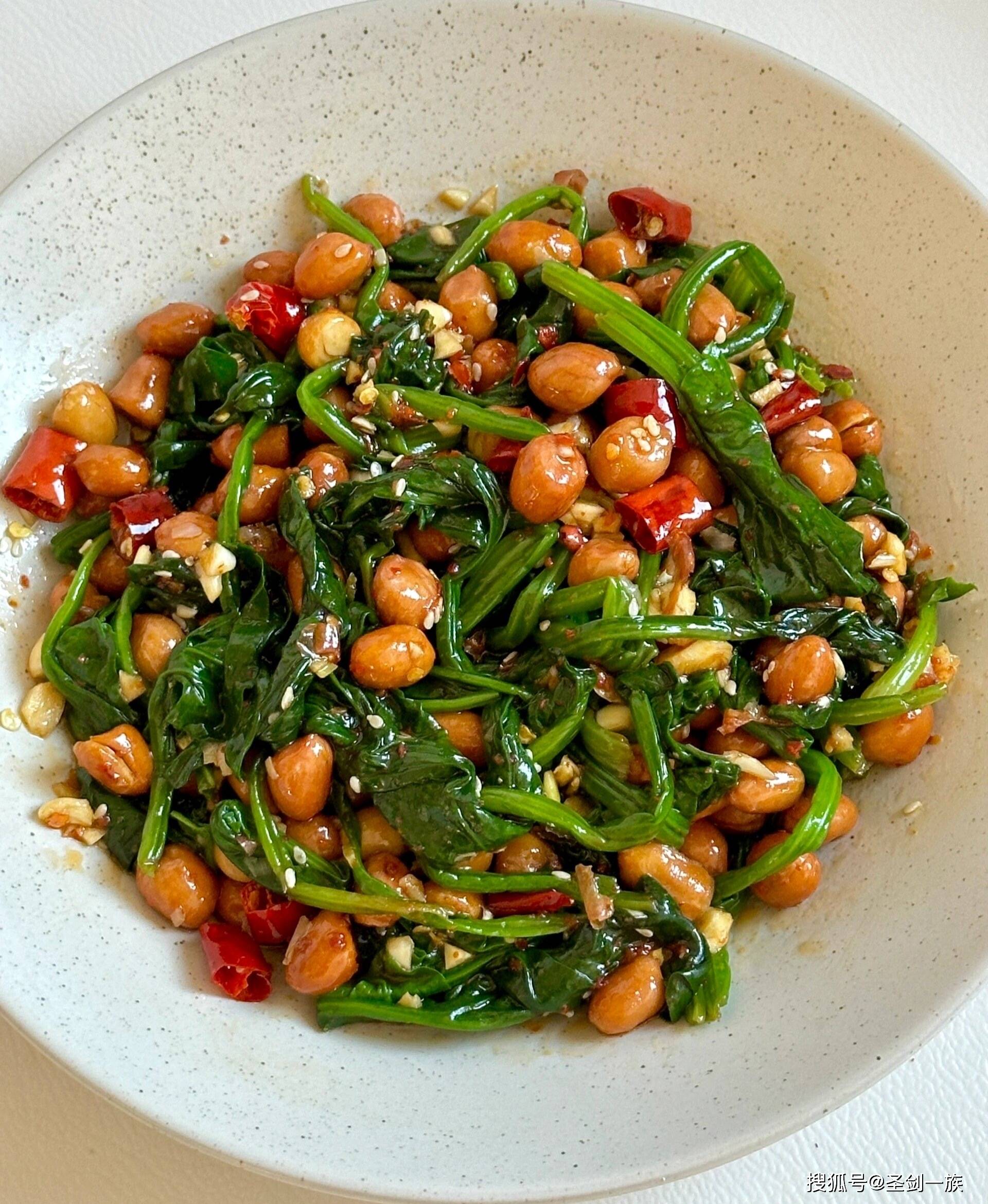 菠菜虽性凉但经焯烫后寒性减弱,搭配温性的花生米可平衡寒热。此菜能补充铁元素和维生素C,适合秋冬餐前开胃。