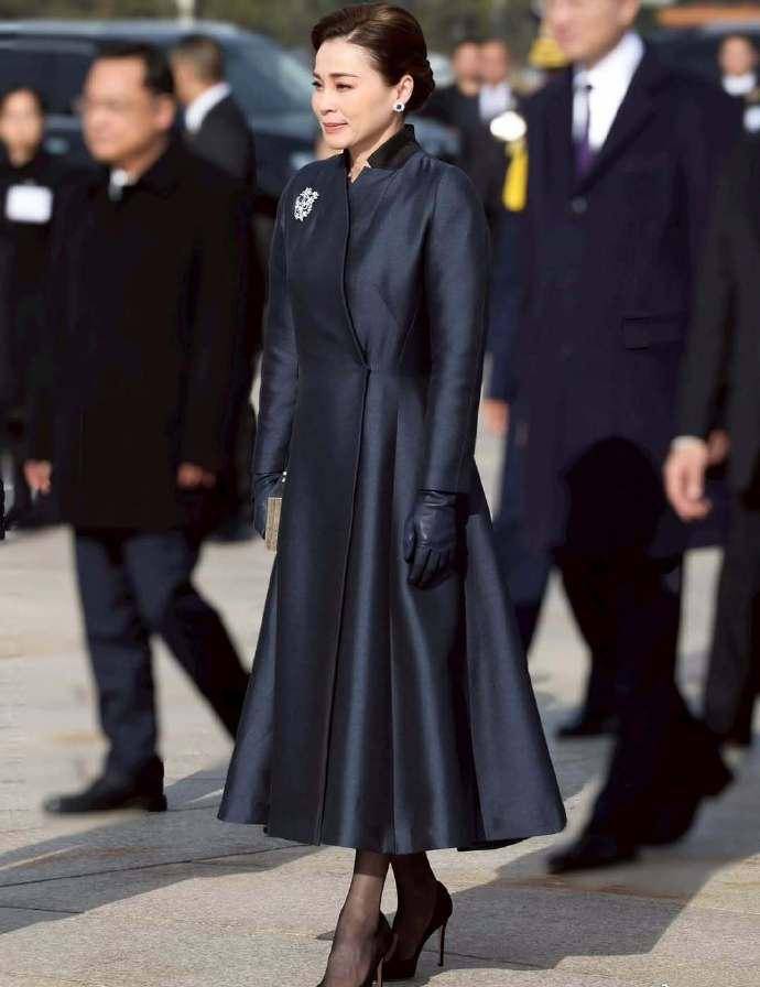苏提达王后访华行程第三日:深色系礼服中的优雅与外交智慧